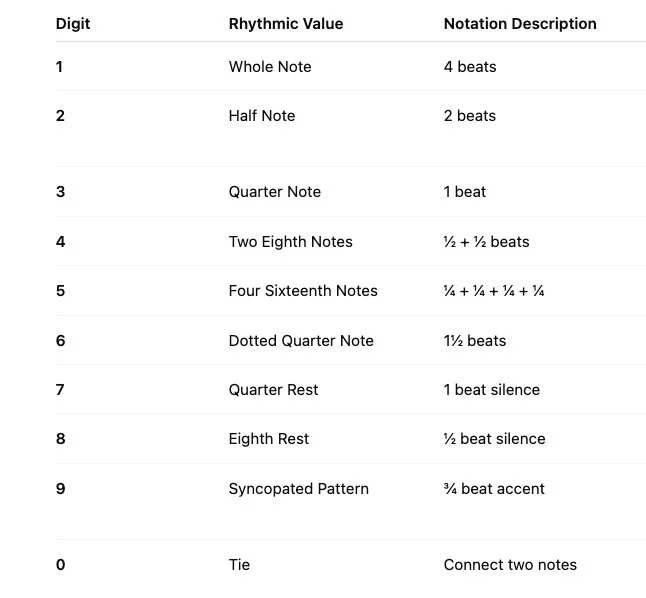 Digits → note duration