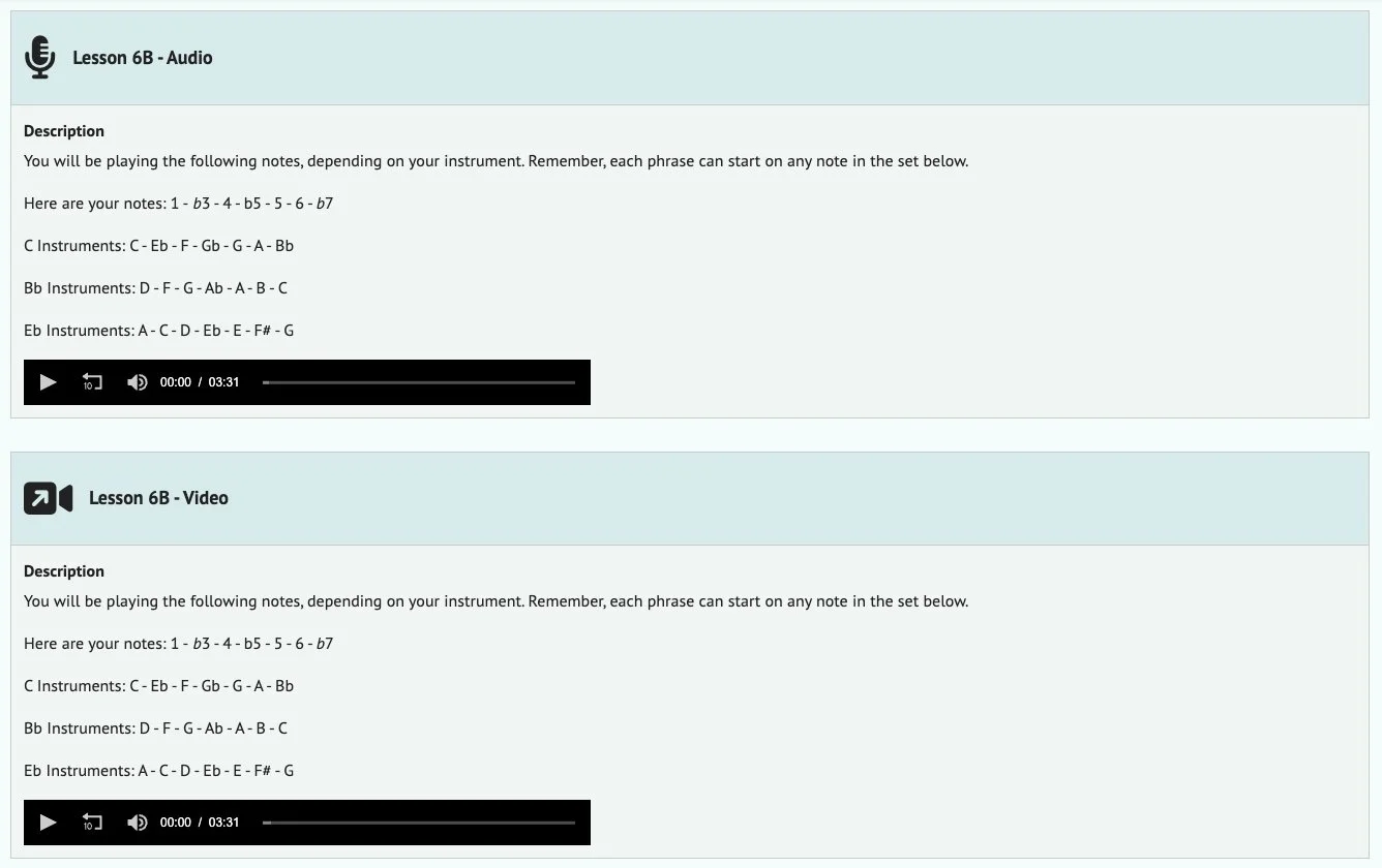 The Erik Lawrence Jazz Improvisation course is designed to get students playing and improvising immediately. Instead of beginning with explanations, it starts with listening and responding. Using a carefully structured call and response method, students learn by doing. From the first lesson, they are actively making music, which builds confidence and engagement right away. I love how it starts from just one note and gradually builds up to a full scale - slowly - step-by-step. Every lesson includes backing tracks that students can play along to while they start experimenting with improvisation. I love this because I think one of the main reasons that I never went into having my students try improvising is that when you first get started, it’s pretty rough. Let’s be honest here - it can make the best player in your band sound pretty bad, and I don’t know too many students who want to volunteer for that kind of experience. I know that I could have approached in a different way, but I just didn’t know how to. Having students practice improvising at home, without anyone around to hear it, is a great way to get started. Every lesson has the students record themselves along with the backing track, and then submitting those recordings to their teacher for feedback. They can record either audio or video. Or both. This, in my opinion, is a wonderful way to approach improvisation.