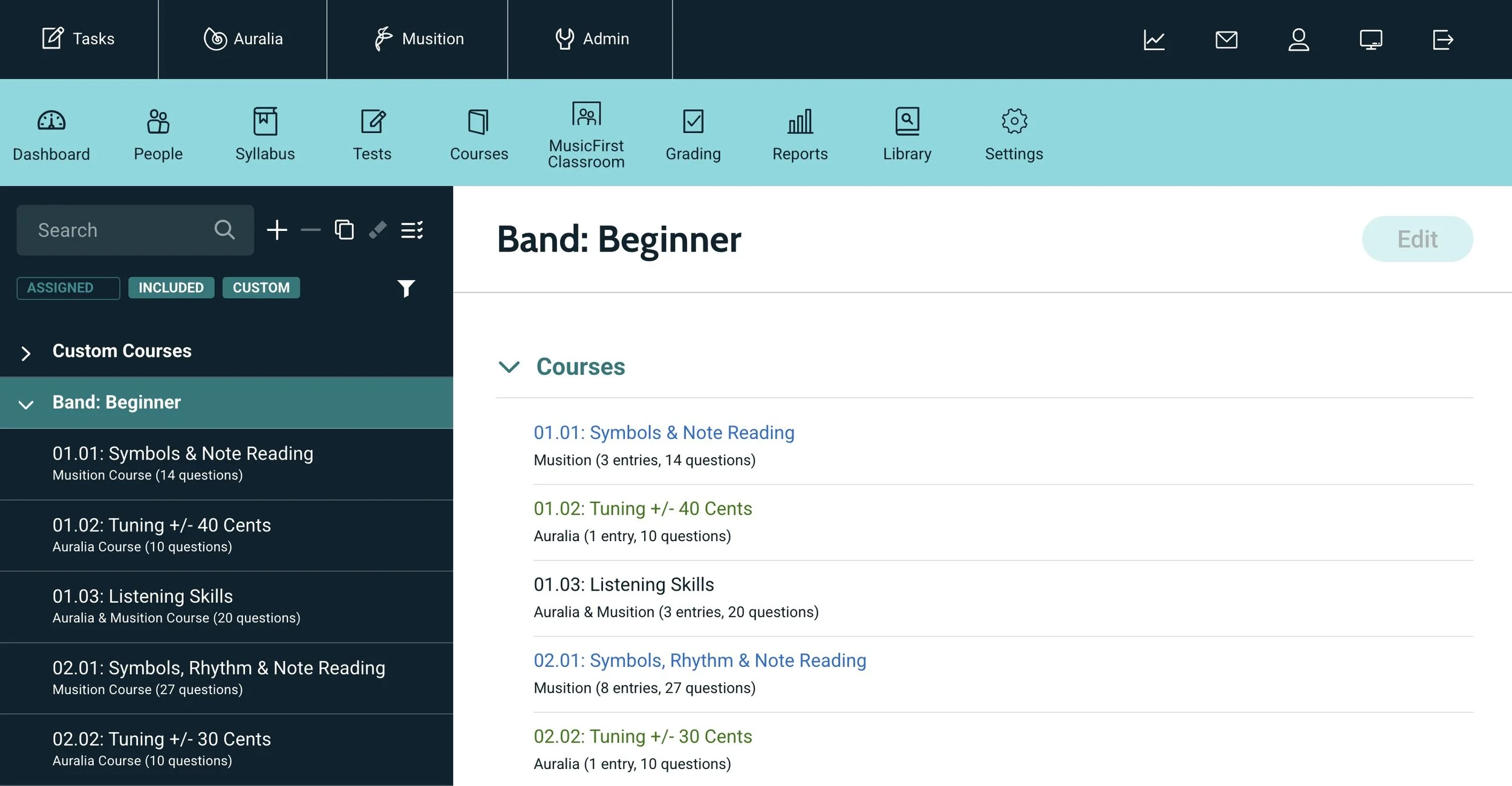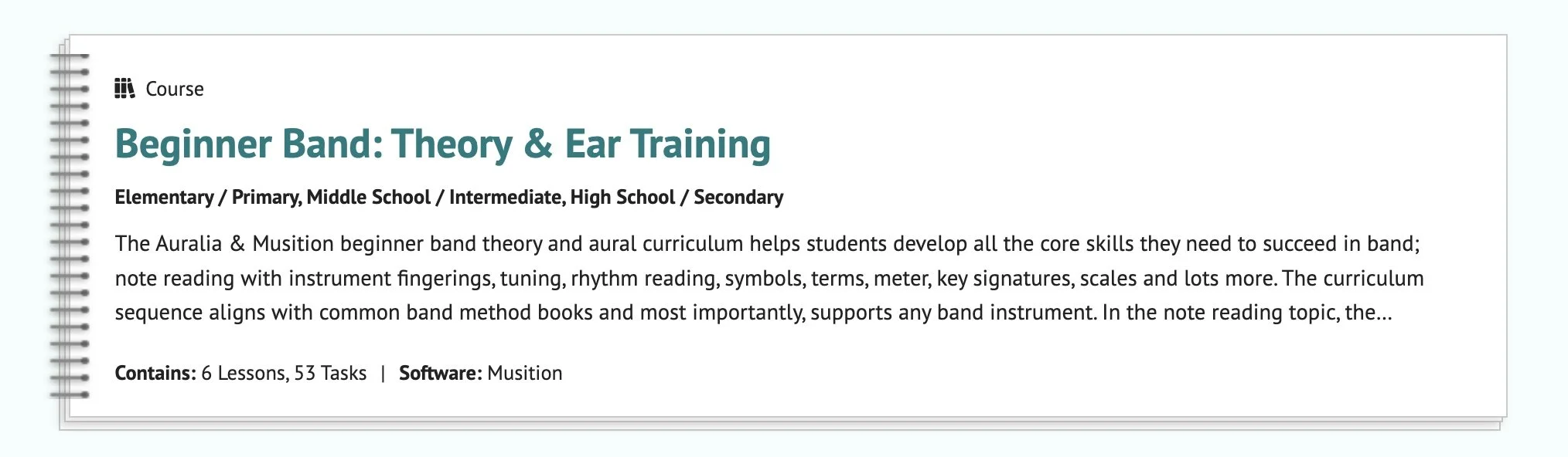 I’m really excited to announce the launch of a brand new beginner band curriculum for music theory and ear training, now included in Auralia and Musition and the MusicFirst Classroom. This new Beginning Band Course is available as part of MusicFirst’s Performance Solution and is designed to support the earliest stages of band instruction with structured, developmentally appropriate musicianship learning. If you are a current MusicFirst Classroom user, you will find this new course, as well as the new Beginning Orchestra course, in the MusicFirst Content Library under the Band and Orchestra categories, as of today.