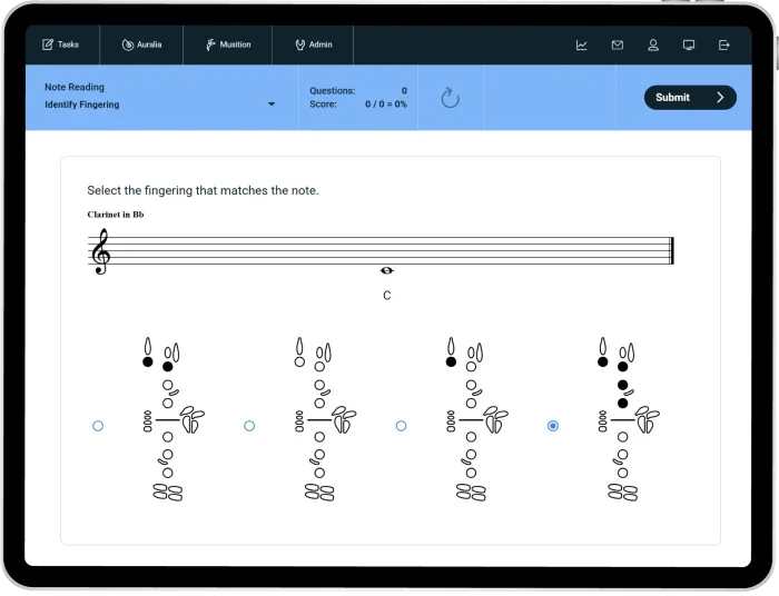 The course centers on the foundational concepts young band students need most. Students build skills in rhythm and meter, note identification, pitch recognition, scales and key signatures, dynamics and articulation, tuning, and basic musical terminology. Activities are automatically assessed, giving students immediate feedback while providing teachers with clear data on individual and ensemble progress.