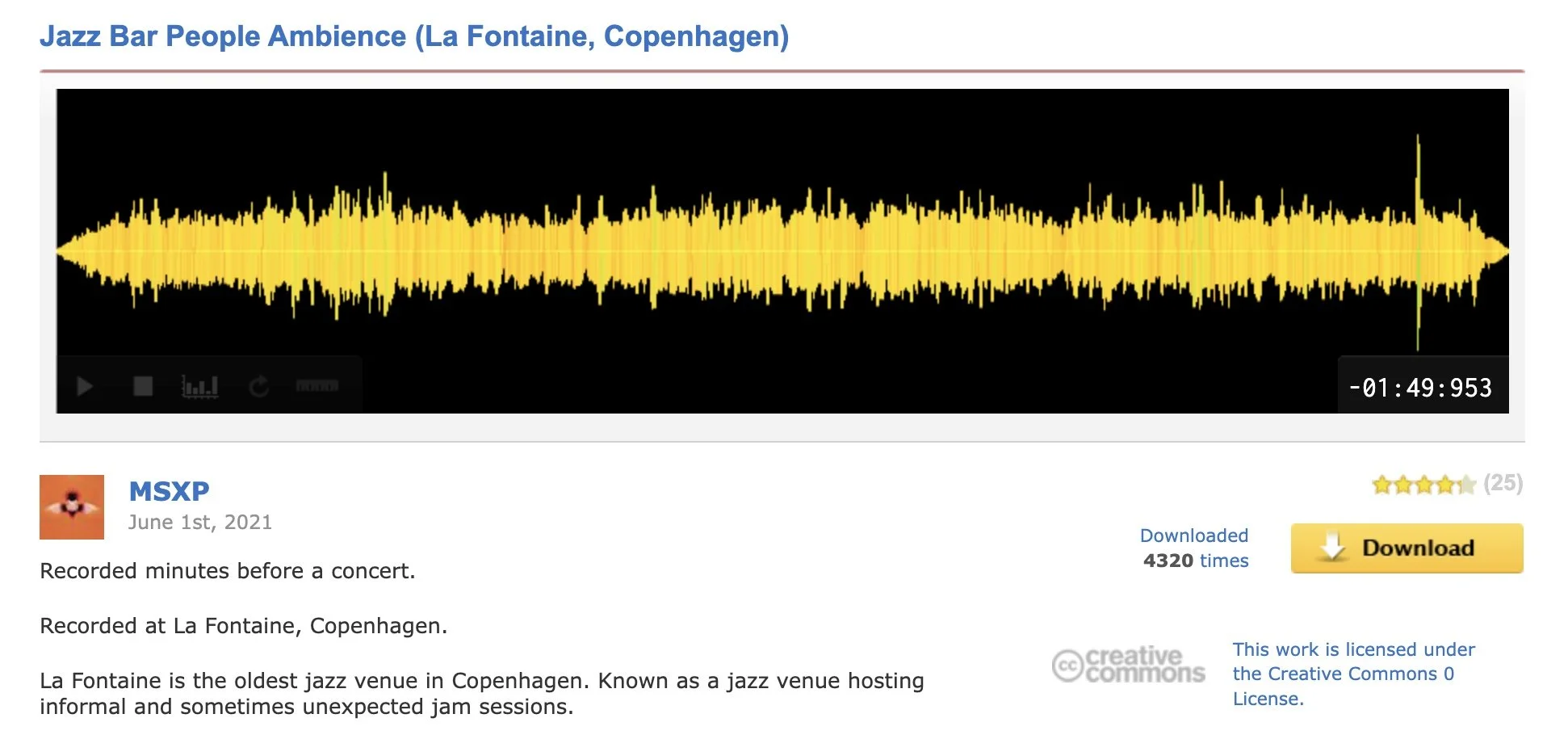 There are many, many other types of audio clips that you can find on FreeSound, including TONS of music loops and samples. This is a great way to have students start adding clips that they like into the loop libraries of the DAWs that they use. All you need to do to be able to download sounds from this site is create a free account - just an email address and a password. Once you have an account, you can help build the library of sounds by uploading your own audio clips. The only catch is that you have to license the use of those clips using a Creative Commons license so that other users can freely use your sounds.