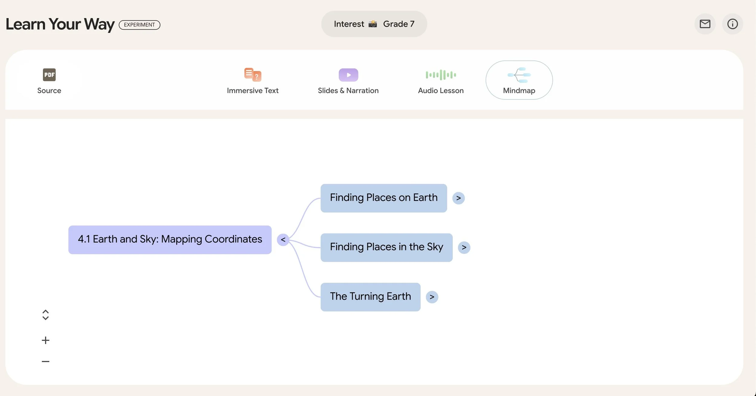 Put simply, Learn Your Way is an artificial intelligence system that turns static educational texts into adaptive, multimodal learning experiences. Give it a chapter, article, or set of class notes, and it can automatically adjust the language level, swap in new examples tied to a student’s interests, and reformat the material into narrated slides, mind maps, audio dialogues, or short self-check quizzes. It’s not a digital textbook so much as a living one. I wrote a post about another one of their experimental products, Notebook LM, a few months ago - a product that turns text into realistic and engaging podcasts, but Learn Your Way takes it to a whole new level. While you can’t upload your own materials yet (I signed up for the waitlist), I think that their guided demo is really impressive. Here’s why: