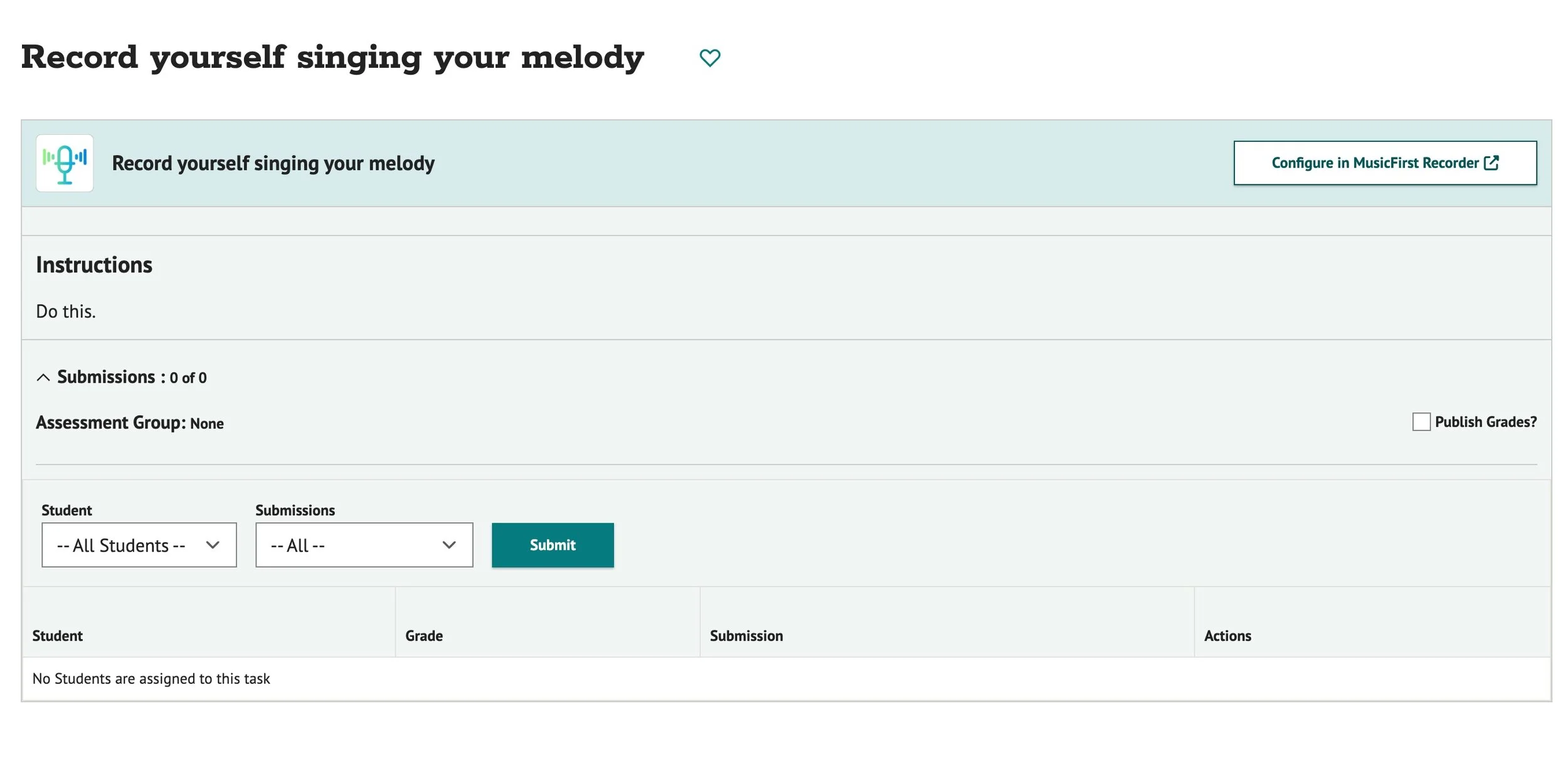 It’s as easy as that! Now if you’d like your students to submit recordings as homework assignments, the MusicFirst Recorder is even more powerful. When you create a Task in the MusicFirst Classroom for your students and you’d like to use the recorder, follow these steps: